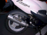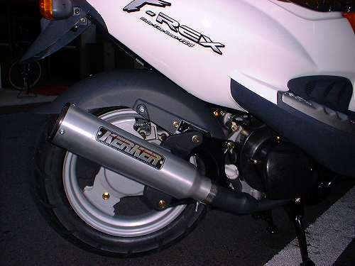 | T−REXバーハンカスタム+ワンオフマフラー 安定感がありスマートな走りを体感して欲しい。コストパフォーマンスで選ぶならこの一台。デザインもシンプルで、通勤用にはもってこいの優等生。曲面を多用した高級感を感じさせるボリューム感のあるデザインが美しい。デュアルライトやハイマウントストップランプ、グラブバーまで統一感があり、ホワイトフロントウインカー、メッキ仕上げのマフラー周りなども高級感のある仕上がり。シート下のメットインスペースも十分確保されている。またがるとシートはやや高め。なぜか真中当たりが盛り上がった形状をしているので最初は違和感を感じるがクッション性は良く、疲れにくい構造。足元も広く、のびのびとしている。 メーターの視認性も良い。フロント油圧ディスクブレーキ、リアドラムブレーキを装備し、重めの車体をスムーズに減速させる。前後サスペンションの作動性は良く、高級感のある乗り心地。細かいギャップはもちろん、多少の路面のうねりでも振られずに安定している。 エンジンは空冷4ストローク125cc。静かでトルクフル、レスポンスは穏やかだがダダダッとおしだす強さを感じる。スピードののりも良く、二人乗りや坂道でも力強く走る。 トルクもアクセルに比例して伸びるため扱いやすい。どこからでもついてくるエンジン特性のため、中間加速も気が付くと速度が出ている、といった具合で最高速域も4ストらしく伸びが良い。法定速度+?での走行は十分にできる。 ハンドリングは落ち着いていて切り返しでの挙動変化も少なく、エンジン特性も含めて長距離クルージングでも疲れない。タンデムランも楽しめる手軽なクルーザーといった感じで、使い勝手の良いスクーターだ。T-REX150は、125cc同様の車体に150ccエンジンを搭載し、余裕の走りが実現している。排気量がアップしたことから、高速道路走行も可能となり、通勤・通学のシティコミューターとしてだけでなく、ツーリングなどにもマッチするツアラー的な要素も増え、使い勝手が広がった。シート下のメットインスペース、ハンドル下部にあるフロントボックスなど、使いやすい装備が満載です。 |
