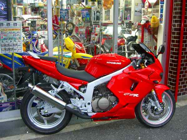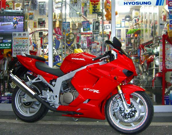 | HYOSUNG GT250R 自社オリジナルの DOHC 90 °Vツイン空油冷エンジンを搭載。キャブレターは国内外において評価の高い、ミクニ製 BDS26 TYPE を採用。独創的なフォルムと軽快なハンドリングが日常での使い易さに貢献。また、倒立タイプのフロントフォークや 17 インチホイールの採用で、走りと個性を両立。ストリート・ハイウェイ、オールマイティーなマシン。 |