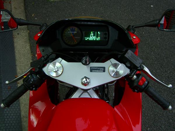 | HYOSUNG GT250R 自社オリジナルの DOHC 90 °Vツイン空油冷エンジンを搭載。キャブレターは国内外において評価の高い、ミクニ製 BDS26 TYPE を採用。独創的なフォルムと軽快なハンドリングが日常での使い易さに貢献。また、倒立タイプのフロントフォークや 17 インチホイールの採用で、走りと個性を両立。ストリート・ハイウェイ、オールマイティーなマシン。 |