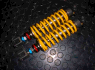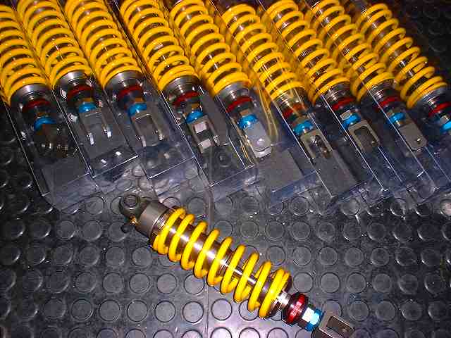 | Good−Stage 完全オリジナル リアサスペンユニット 280mm 終了 原付2種(80〜180cc)方持ちシングルサスペンションは現在納得のいく商品が無く、オリジナル制作いたしました。 適応 ストリート・サーキット・峠・0〜50m 仕様 (1スプリング 2ダンパー 3車高 と3ヶ所の調整が行えます。) 外観=アッパー、ロアーアルミボディー・N2(窒素GAS)アルミダンパー・オーリンズTYPEスプリング・極太ロッド・バンプラバー・シャンパンゴールドアルマイトカラー ダンパー=独自の減衰力基準を設定し更に30段調整機構を備え、N2(窒素GAS)の採用により長時間安定したダンパー性能です。ボディーにはアッパー・ロアー同様放熱性の良いアルミを採用し軽量化にも貢献しております。極太ロッドの採用によりサスペンション剛性を追求しシール性の向上しました。赤いアルマイトのダンパー調整は工具を必要としない簡単な素早い調整を可能にしました。軽量化と色々な車種に取付可能なサブタンクレス仕様です。 スプリング=原付2種(80〜180cc)方持ちシングルサスペンション用に独自に設定したバネレートを定めております。厳選した太巻きスプリングを使用しルックスにも貢献しております。カラーはおしゃれなオーリンズTYPE。 車高調整機構=サスペンション下方に備えリアセクションの車高を変えられます。ロックナットはブルーアルマイト。 |