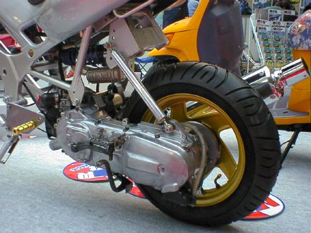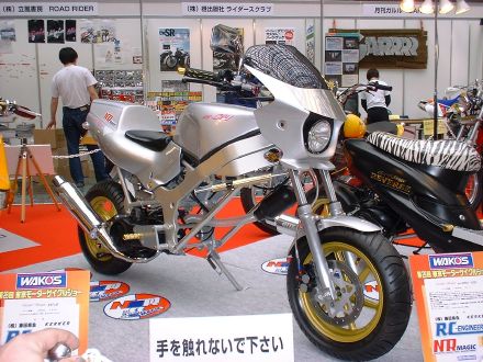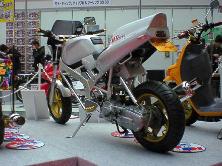 | ss-CPU 100 ベース車両 HONDA NS−1 スポーツ・スクーターGood-Stage ss-CPU 原付のカテゴリでいままで無かった、フルサイズ・ロードスポーツ・スクーターです。 スクーターでは一般的なセルスタータ・メットイン(荷物入れ)の使い勝手の良さと、ロードスポーツの高性能なフレーム・サスペンション・ブレーキ・カウリング・ライディングポジションの採用により操る楽しさを演出、フルサイズの満足なサイズにより、想像以上の乗車感があります。リンク式リアサスペンション採用。タンク内はメットインスペースです。 又、タンク下のスペースはオーナーの仕様により、多目的にお使いいただけます。(例・水冷化による、ラジエータの装着 etc) 50cc・70cc・100cc・250ccラインナップ予定。 |