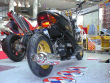 フレームフロア10cm延長+20cmロングスイングアームにより桁外れの存在感。定番のフロントカウルは廃止し単車のイメージを取り入れた型にはまらない個性。ローダウン特有のルックスに仕上がりました。
